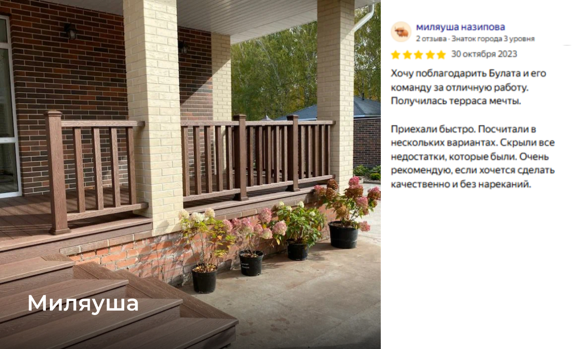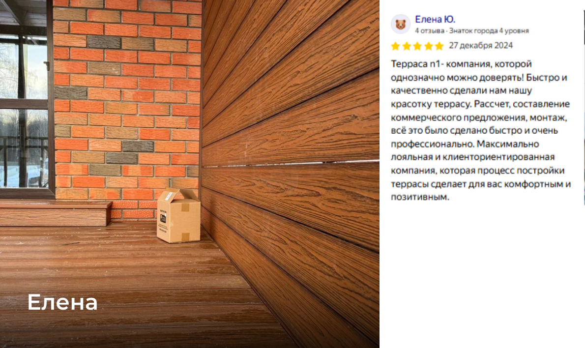 Миссия нашей компании — сделать жизнь наших клиентов лучше и ярче, предлагая им качественные и стильные террасы, которые соответствуют их образу жизни и помогают обрести гармонию с окружающим миром.
